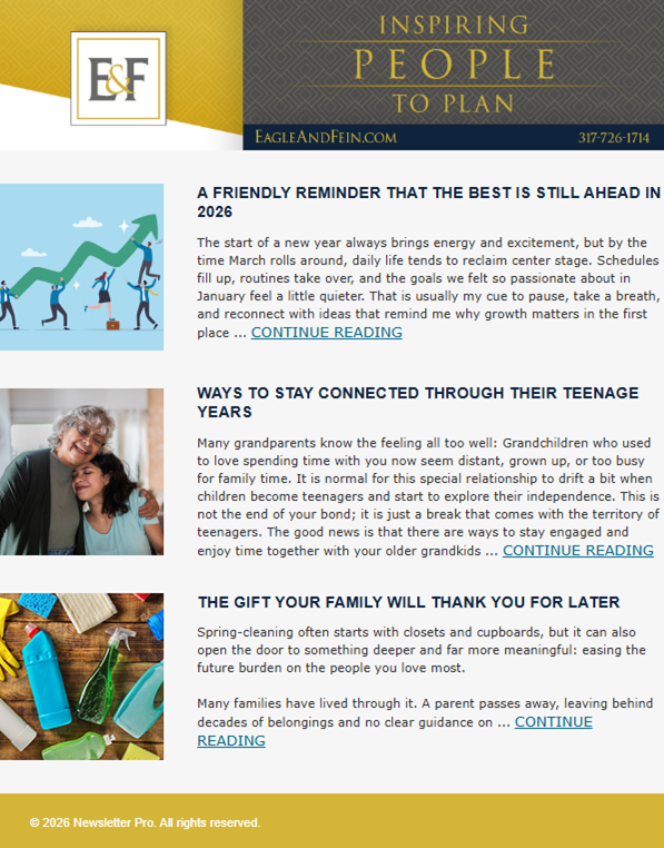 We are excited to share our Firm Newsletter with you! For the March/April issue, we are featuring the following articles: A friendly reminder that the best is still ahead in 2026 Ways to stay connected through their teenage years The gift your family will thank you for later Click...
