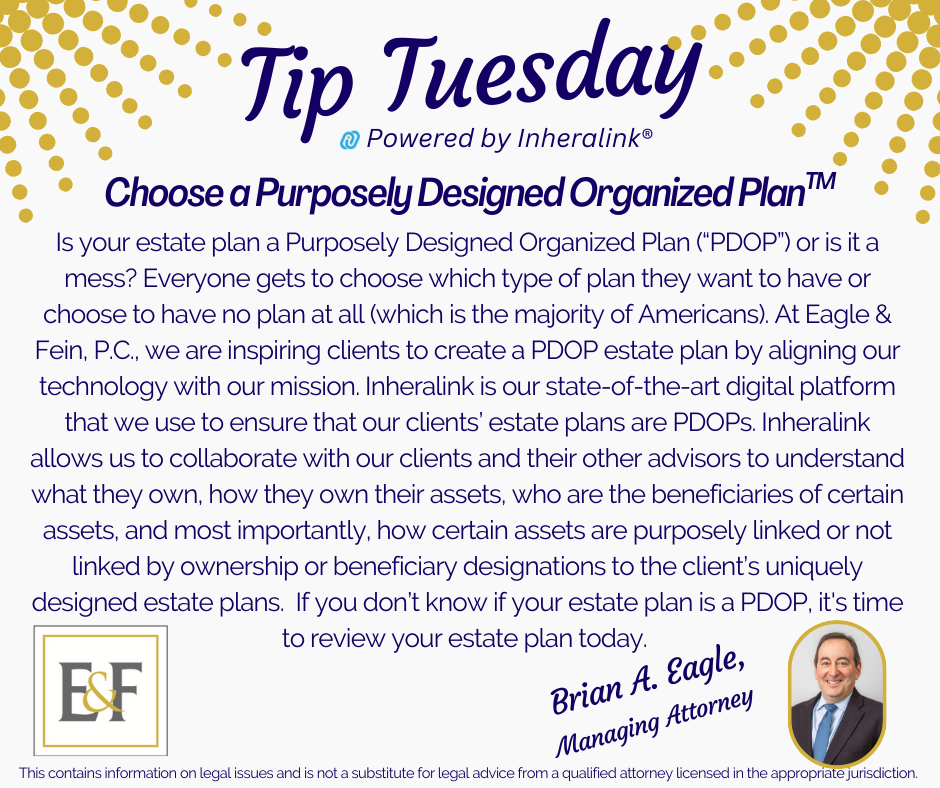 7.24.2025 Welcome to Eagle & Fein, P.C. We are excited to share our Firm Newsletter with you! For the July/August issue, we are featuring the following articles: What if we listened like it was 1776? Why your estate plan is not complete without your digital assets Smart estate planning for...